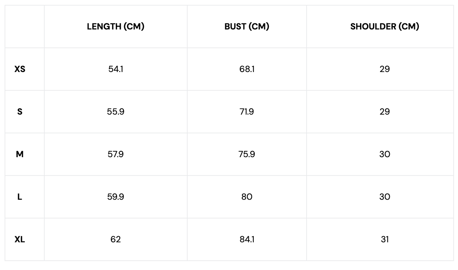 Guide des tailles