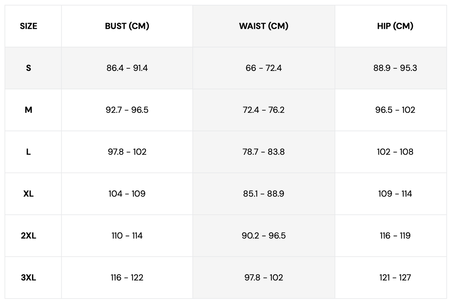 Guide des tailles