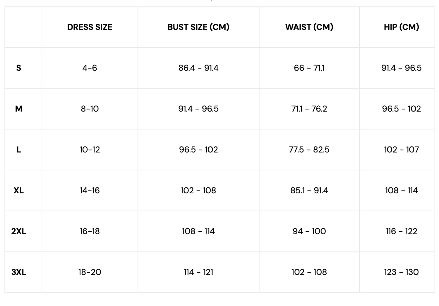 Guide des tailles