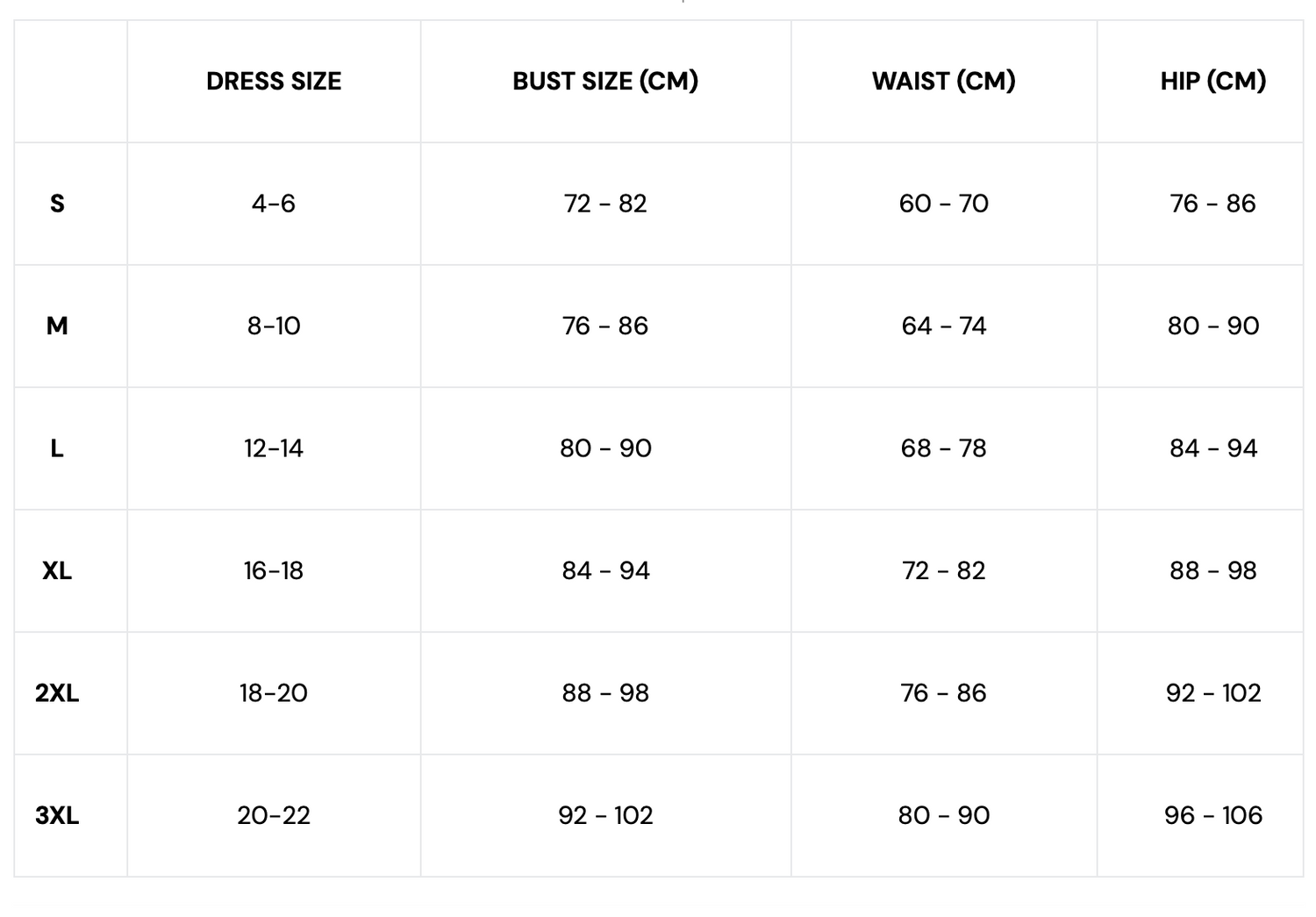 Guide des tailles