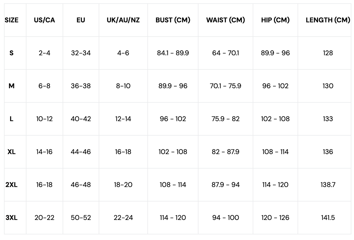 Guide des tailles