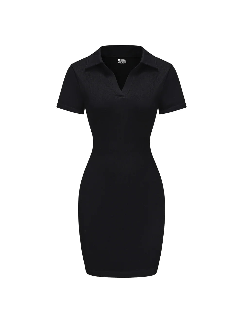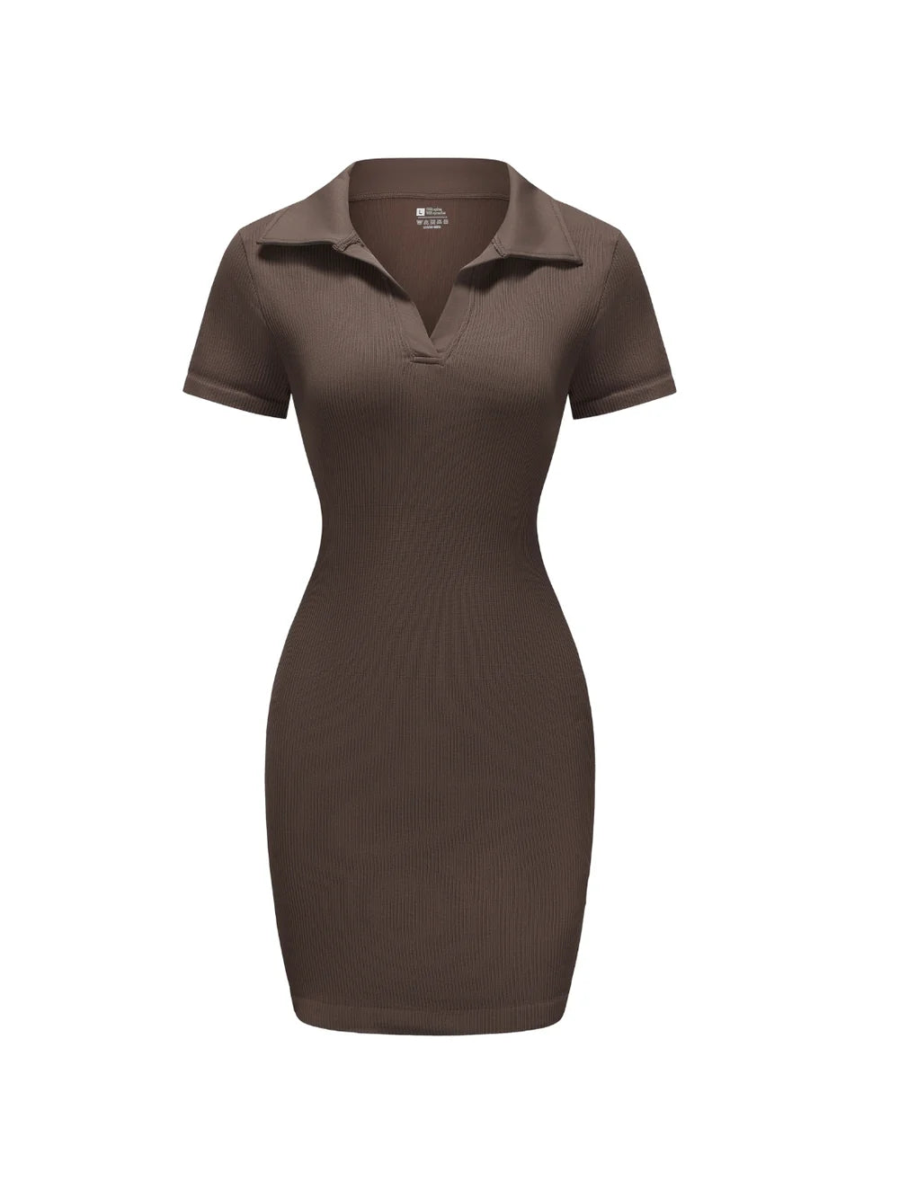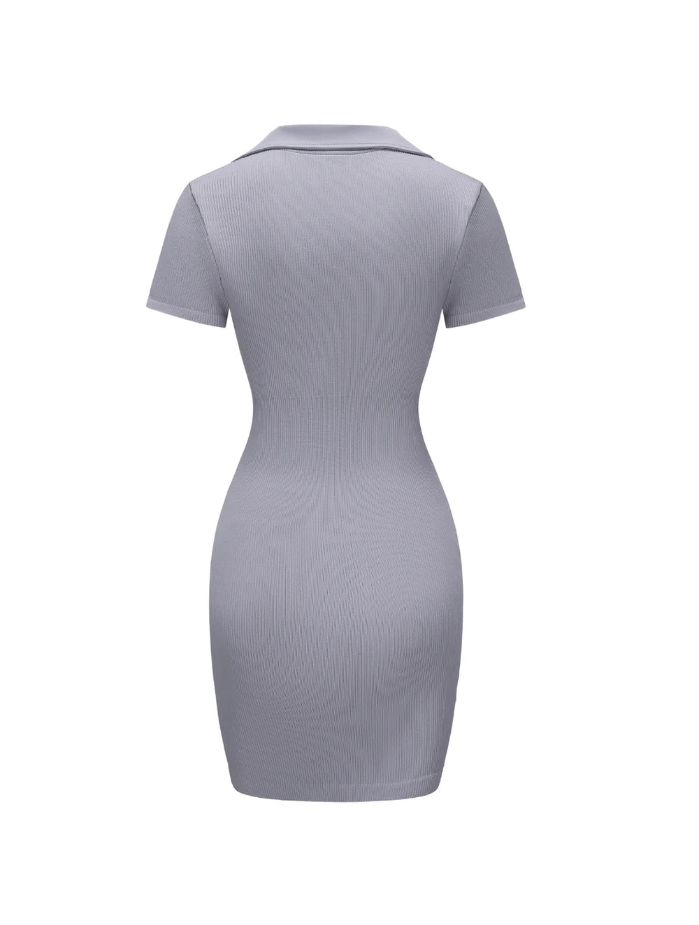 Avec son tissu côtelé extensible, son encolure à col et sa silhouette ajustée, il vous offre un look élégant et soigné sans jamais être restrictif. Les manches courtes et la longueur mini en font l'équilibre parfait entre chic et décontracté, que vous fassiez des courses, alliez bruncher ou que vous l'habilliez pour la soirée.