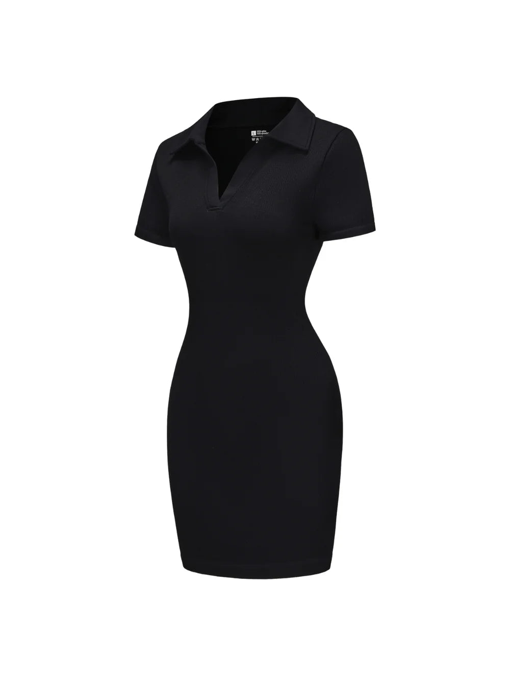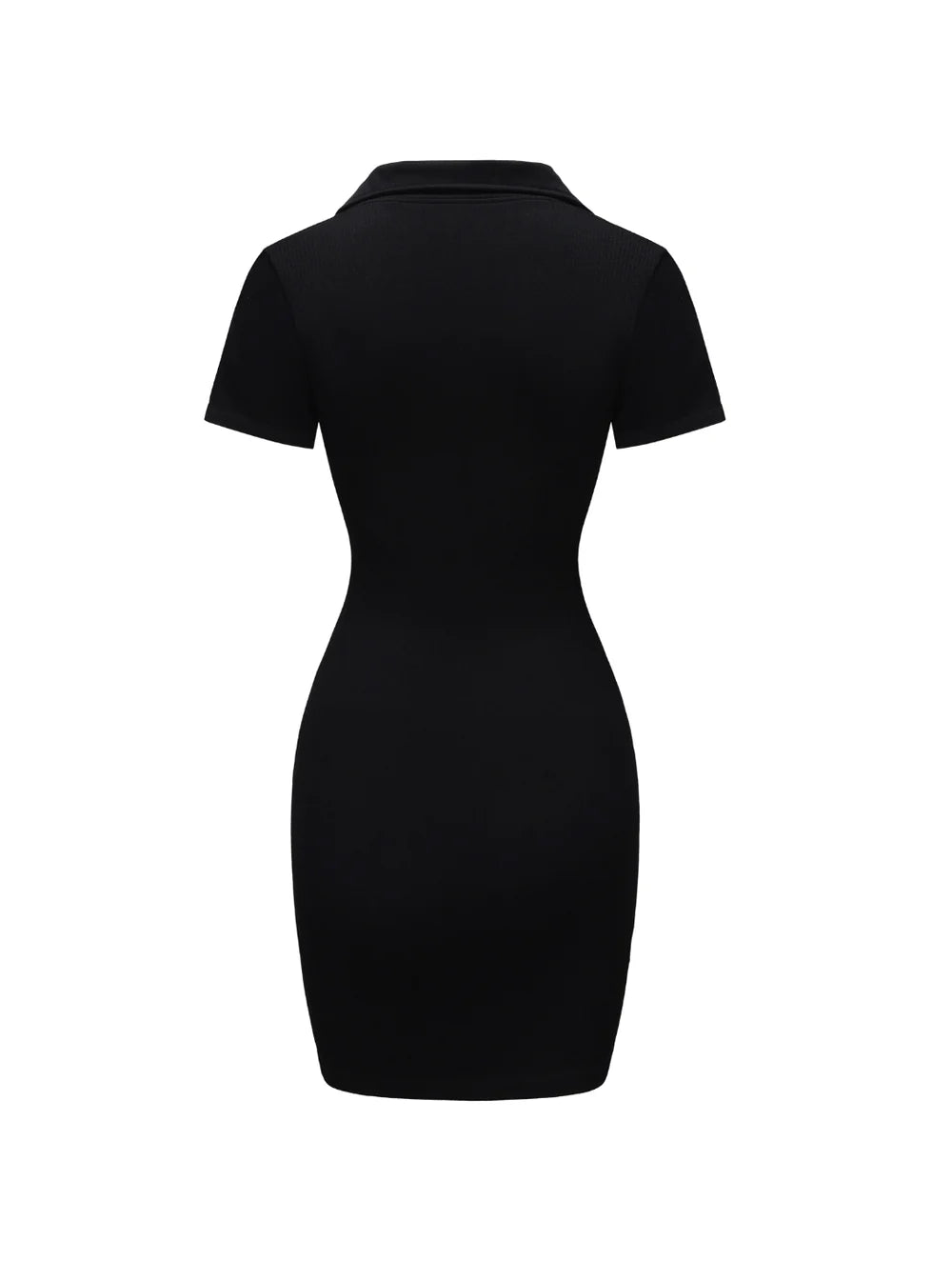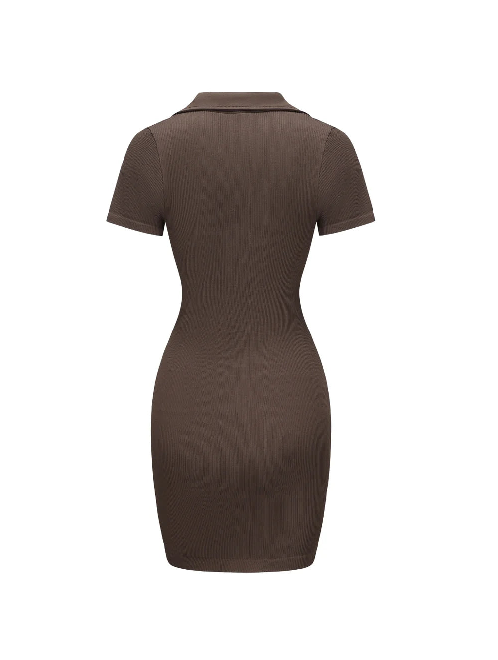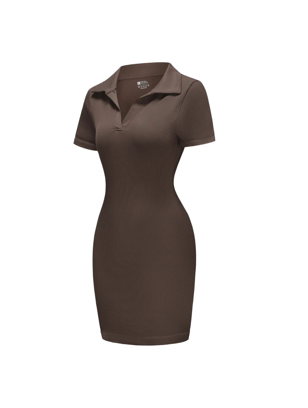Avec son tissu côtelé extensible, son encolure à col et sa silhouette ajustée, il vous offre un look élégant et soigné sans jamais être restrictif. Les manches courtes et la longueur mini en font l'équilibre parfait entre chic et décontracté, que vous fassiez des courses, alliez bruncher ou que vous l'habilliez pour la soirée.