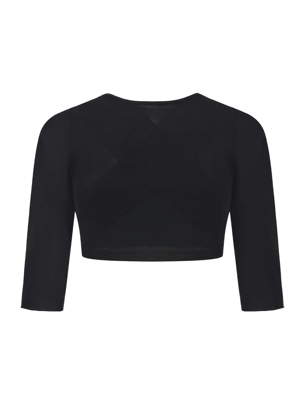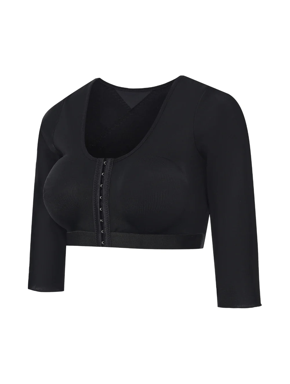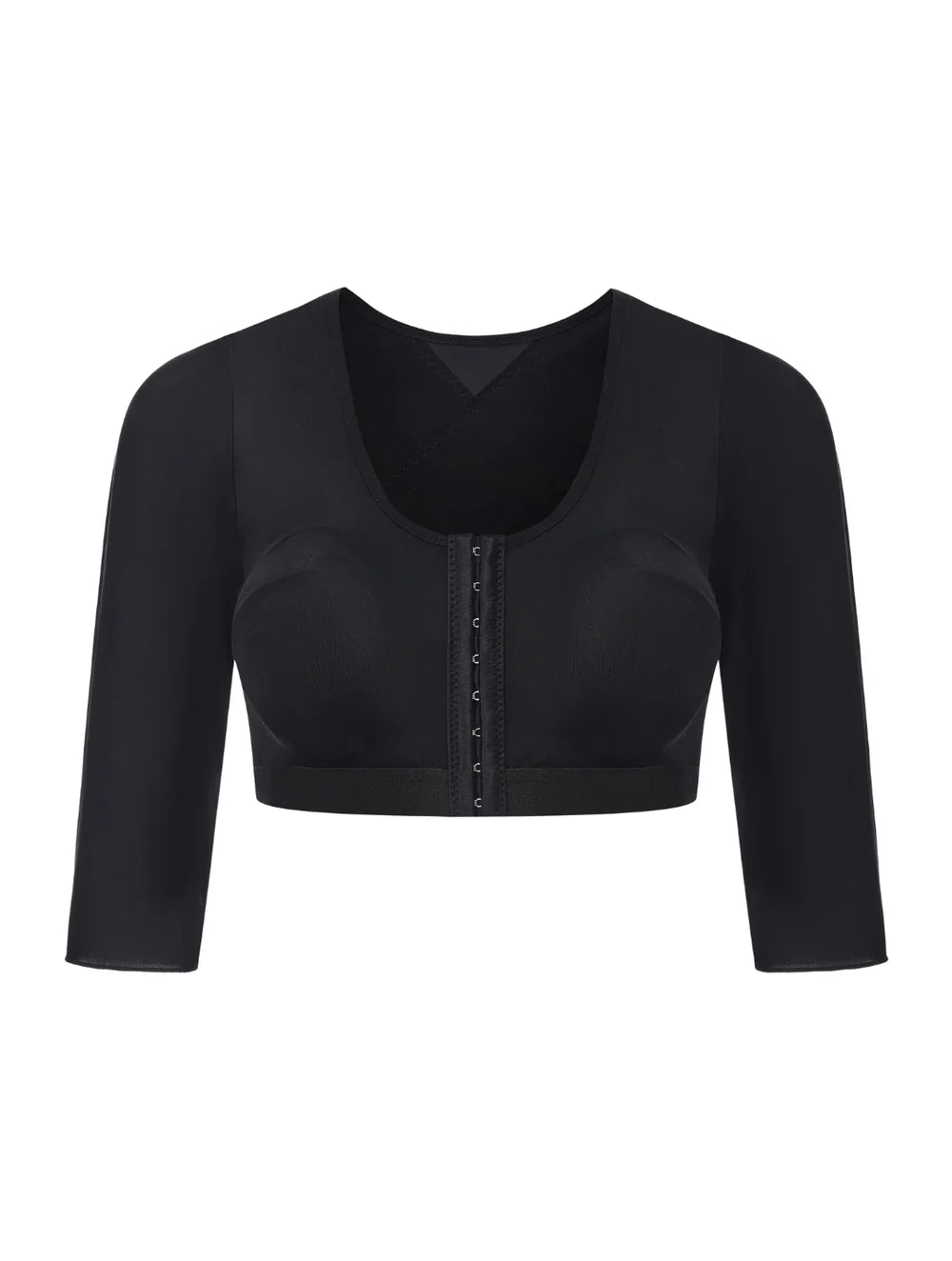 Sculpture des Bras et du Dos à 360° : Les manches de compression affinent et lissent le haut des bras, tandis que le panneau dorsal réduit les bourrelets pour un look élégant et sans coutures.